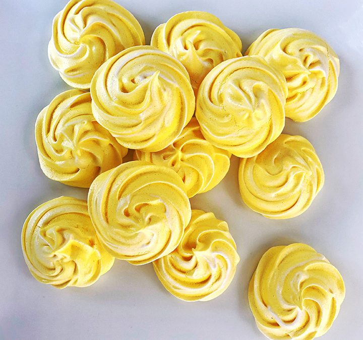 Using only 5 ingredients, meringue cookies are some of the simplest to create. Egg whites are whipped to stiff peaks then dropped or piped onto cookie sheets and baked at a low temperature to dry to a crunchy delight. If you don’t like banana, you can substitute your favorite flavor extract.
